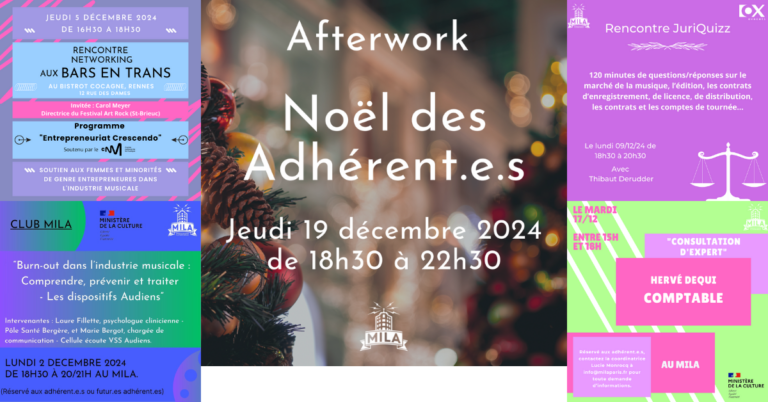 Le mois décembre s’annonce chargé au MILA : un Club MILA sur la prévention du burn out dans l’industrie musicale, une rencontre networking aux Bars en…
