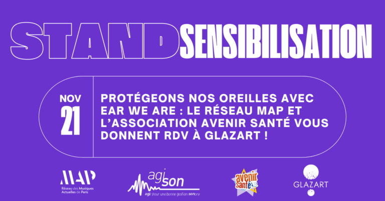 Protégeons nos oreilles avec la campagne EAR WE ARE : le Réseau MAP et l’association Avenir Santé vous donnent rendez-vous à Glazart le 21 novembre…