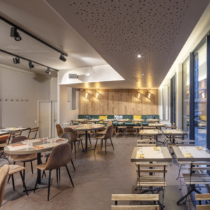 Situé au rez-de-chaussée, le restaurant du 360 est un lieu convivial qui favorise les échanges entre les équipes ainsi qu’avec le public. Grâce à sa carte savoureuse, accessible et dans l’esprit cosmopolite du quartier, il met en avant une production en circuit court et respectueuse de l’environnement mais aussi une cuisine raisonnée, diététique, simple et métissée qui embrasse les Caraïbes, l’Amérique Latine, l’Afrique, l’Asie du sud-est ou encore le Japon.