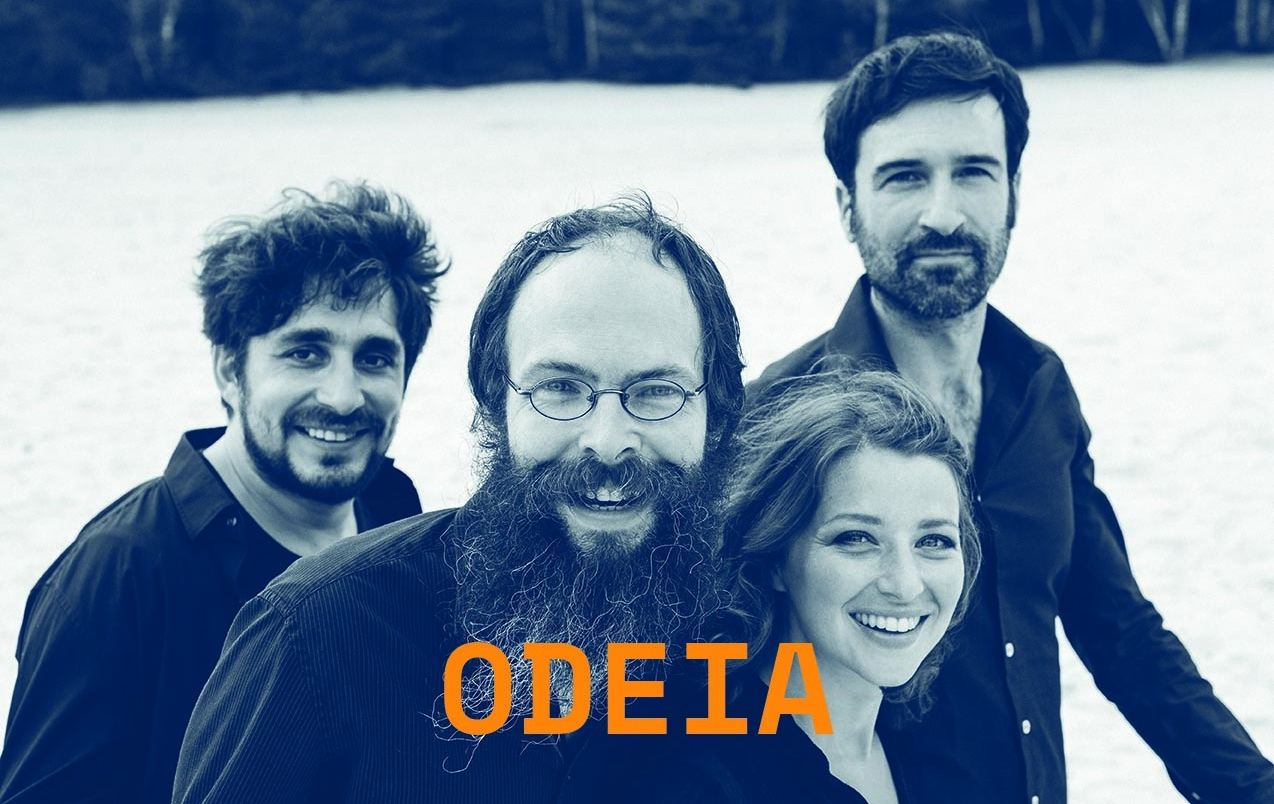 De la guitare de Karsten Hochapfel (Naïssam Jalal, Morgen Naughties…) à la contrebasse de Pierre-Yves Le Jeune (Le Petit Bal de Poche, Rue de Tanger), Odeia s’incarne, hors des styles, des langues ou des musiques ; loin aussi des inventions factices d’on-ne-sait quel volapük.