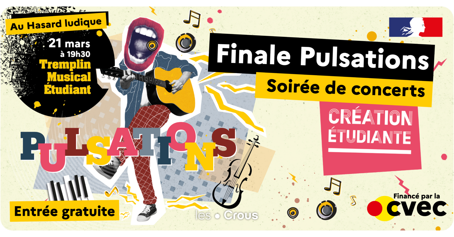 La finale Pulsations, c’est le rendez-vous pour passer une soirée en musique et découvrir les nouvelles pépites de la scène parisienne. Les 6 finalistes du tremplin musical étudiant Pulsations se partageront la scène pour faire bouger le public et surtout convaincre le jury. Une première pour Beside, qui coproduit la soirée ! À votre avis, qui sera nommé·e lauréat·e et accèdera à la finale nationale ?