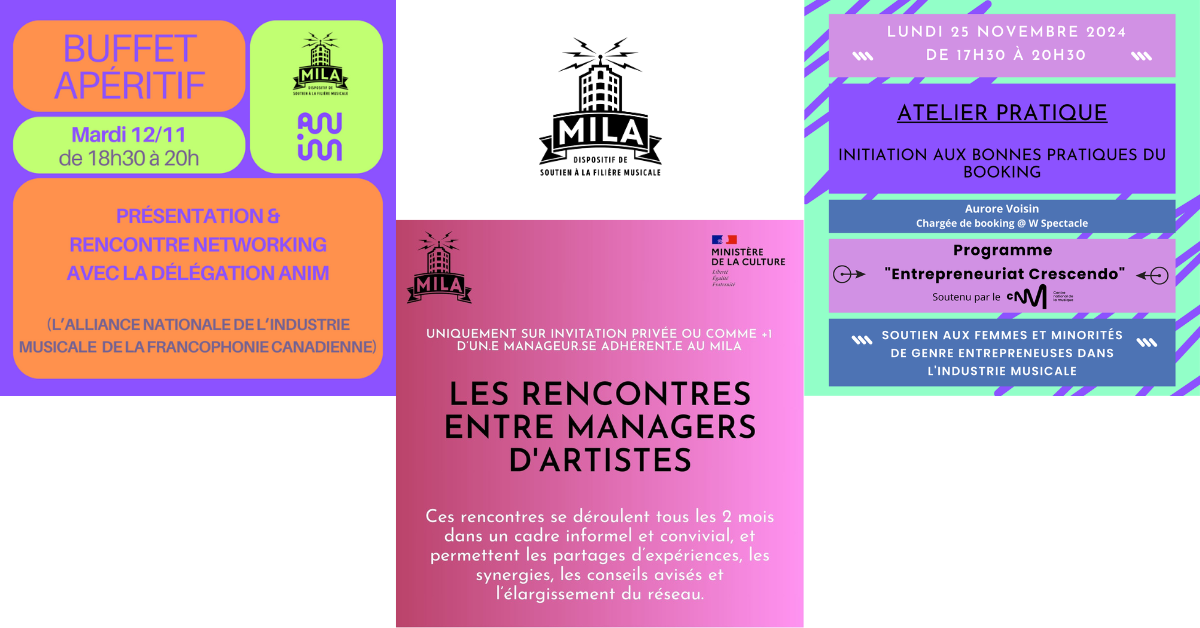 Les opportunités MILA du mois de novembre couvrent des sujets variés, offrant aux adhérent·e·s des occasions uniques de développement dans le domaine musical.