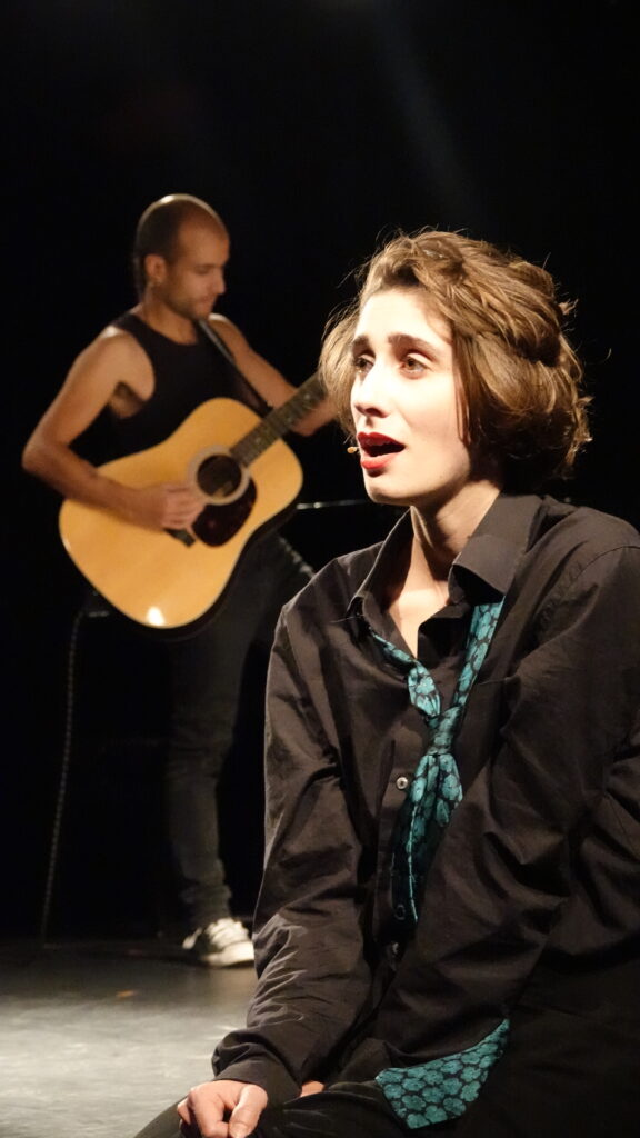 Tout semble être sous contrôle jusqu’à ce qu’un incident vienne perturber l’oratrice, peut-être un peu trop certaine de sa maîtrise du sujet… Plongée malgré elle dans les abîmes insoupçonnés de ses désirs, ses pulsions, ses peurs, ses interdits, elle se laisse petit à petit dépasser et s’abandonne, s’ouvre, se livre et nous entraîne dans un voyage exaltant et accidenté à travers un répertoire varié et atemporel de chansons, de 1850 à 2005, de Jean de Béranger à Goldman en passant par Yvette Guilbert, Piaf, Nicole Louvier, Axelle Red, Jeanne Moreau, Serge Gainsbourg, Georges Brassens ou Nino Ferrer…