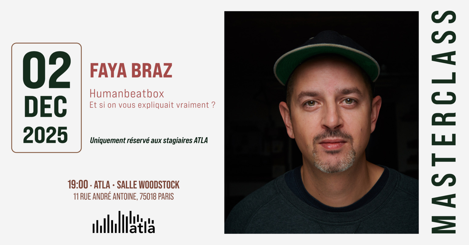 ATLA, vibre au rythme de la créativité depuis plus de 30 ans. Elle incarne un lieu de vie où la musique se vit pleinement. Le programme du mois de décembre : masterclass Faya Braz [uniquement réservée aux stagiaires ATLA] et jams sessions.