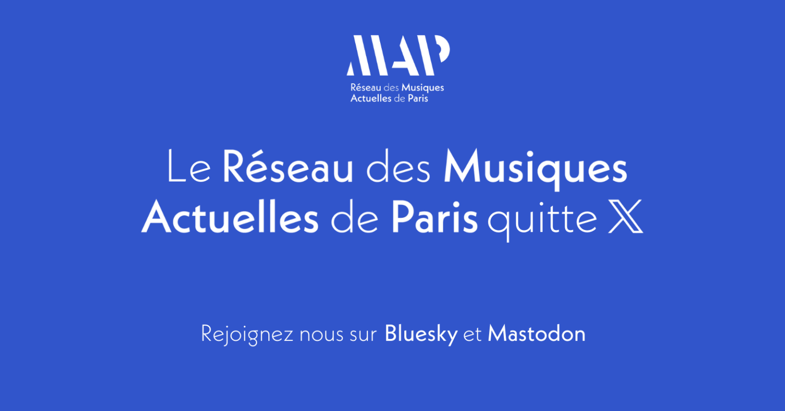 Le Réseau MAP quitte la plateforme X (anciennement Twitter) à compter du 1er mars 2025, poursuivant l’engagement de nombreux·se acteur·ices de la filière des musiques actuelles.
