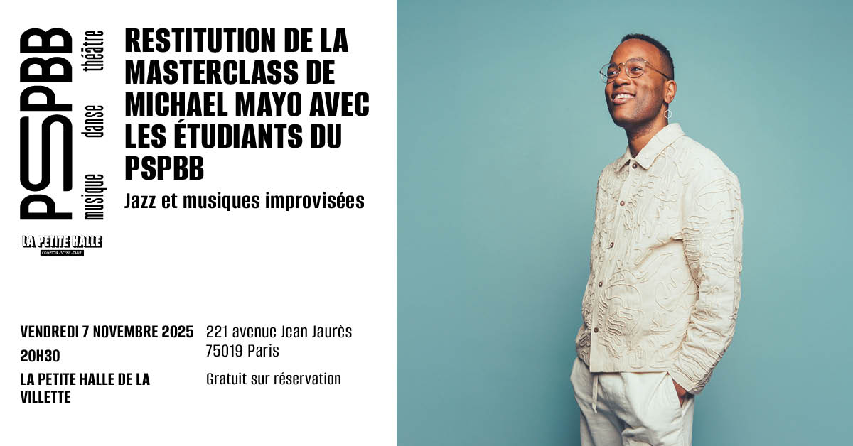 Le département Jazz et Musiques Actuelles du Pôle supérieur d’enseignement artistique Paris – Boulogne-Billancourt poursuit son travail de mise en lien des étudiantes et étudiants avec des artistes de renom à travers ses Masterclass. Après Marc Copland, La Chica, Nina Attal, Sylvain Rifflet, Braxton Cook, Gystère, c’est le chanteur américain Michael Mayo, actuellement en tournée en Europe, qui sera l’invité de cet évènement exceptionnel. Durant 3 jours intenses, les étudiantes et étudiants travailleront les compositions et les arrangements issus des deux premiers disques de Michael Mayo. Cette rencontre artistique et humaine aboutira à un concert sur la scène de la Petite Halle. Entrée gratuite sur réservation.