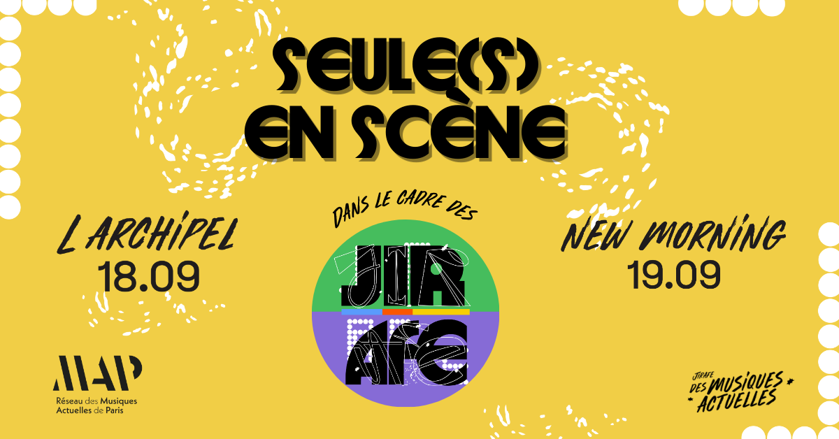 Le Projet Seule(s) en Scène est né grâce à l’impulsion de Pôle Emploi Spectacle et a pour but de mettre en avant des musiciennes qui souhaitent développer un projet solo (ou duo). Pour sa 2ème édition, Seule(s) en Scène s’associe à la convention des JIRAFE – Journées de l’Innovation, la Répétition, l’Accompagnement, la Formation et l’Environnement organisées par le Réseau MAP. Ce dispositif permettra à 14 artistes – sélectionnées suite à un appel à candidature national – de se produire sur scène et de recevoir les conseils de professionnelles de la filière.
