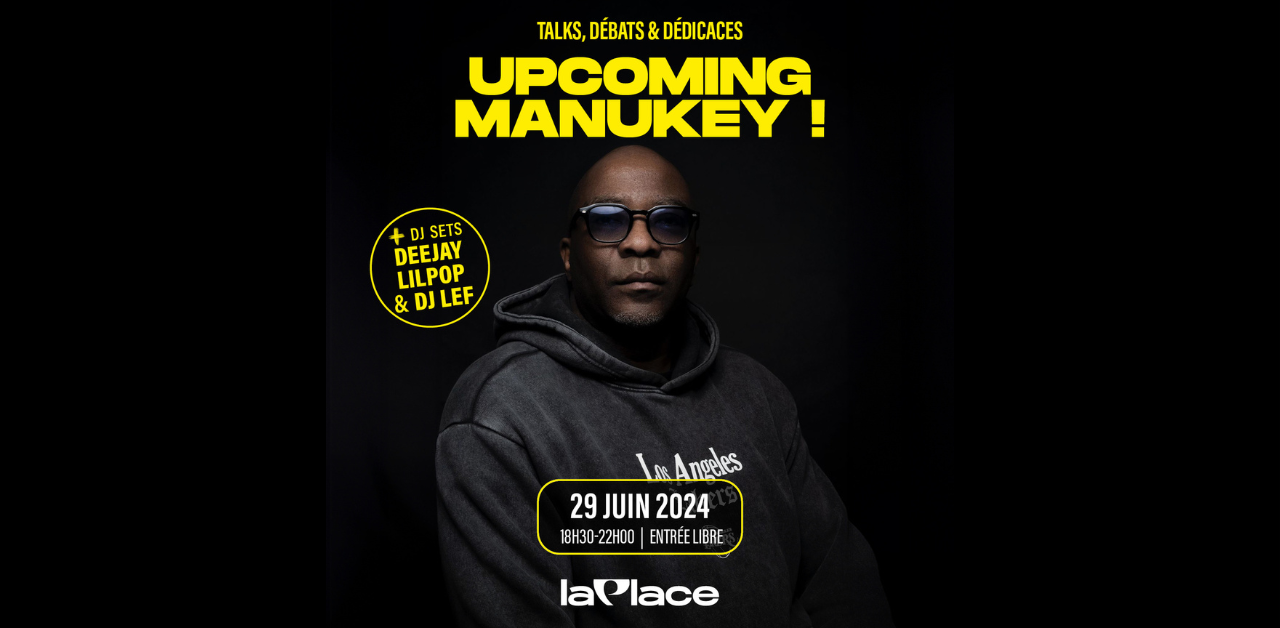 Manu Key présente “Upcoming Manukey !” une soirée entre débats et DJ sets, en entrée libre, à La Place le 29 juin de 18h30 à 22h. Le membre de la Mafia K’1 Fry sera également en dédicaces et proposera ses livres à la vente »